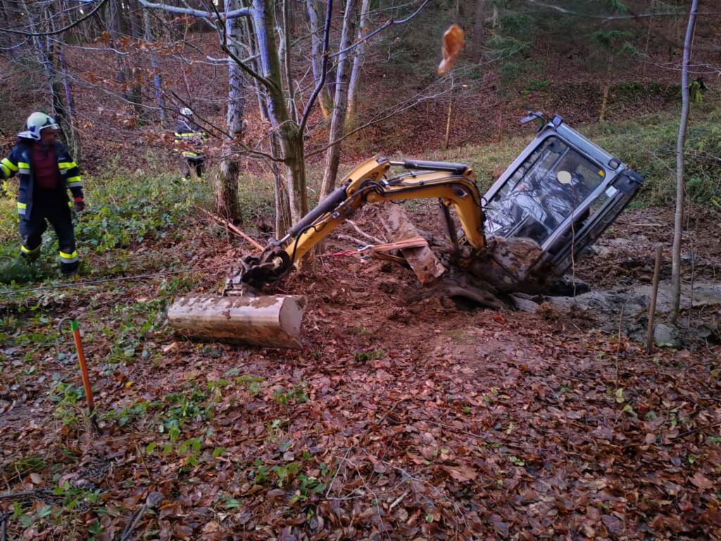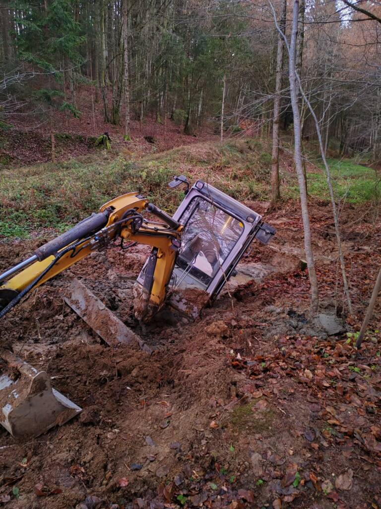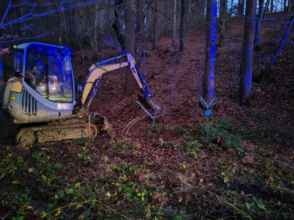 Mittels Seilwinde vom HLF konnten wir den Bagger binnen kurzer Zeit bergen.