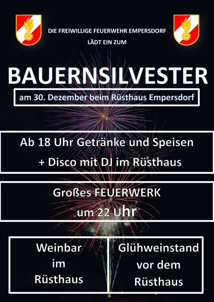 Wir dürfen euch herzlichst zum diesjährigen BAUERNSILVESTER bei der FF Empersdorf einladen![]()